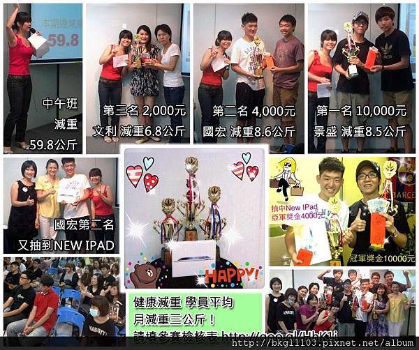 一開始有種標會的概念,每個人交個一千塊,前三名分走50%、30%、20%的獎金,別問我出席的幾十位教練的時薪多少場地費怎麼算,你不知道為了讓大家瘦下來教練們都要犠牲Friday Night來做義工嗎XD