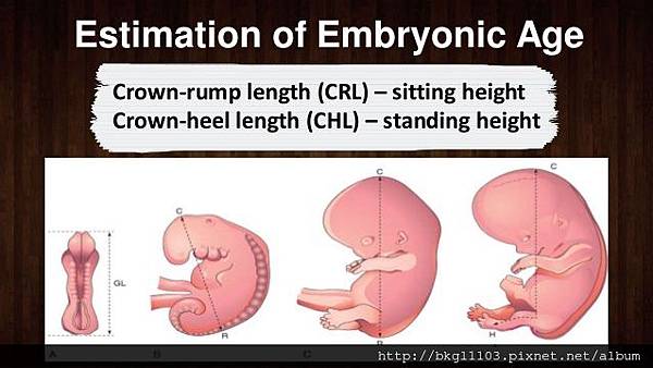 下面為Crown-Rump Length頂臀長(CR, crown to rump)與Crown-Heel Length(CH, crown to heel)頂踵長示意圖