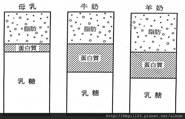以下是母乳與配方奶和其他動物奶水的比較圖: