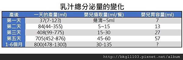 嬰兒出生後的頭幾天每次只需要一點點,第一天胃大約是葡萄的大小,每次哺乳只能容納約5~7毫升。媽媽能輕易生產量小但頻繁的母乳成為寶寶的健康飲食。