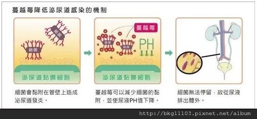 蔓越莓:或其萃取物,豐富的花青素可以與細菌受器結合,令其與法與粘膜細胞接觸而排出體外,可預防泌尿道感染!