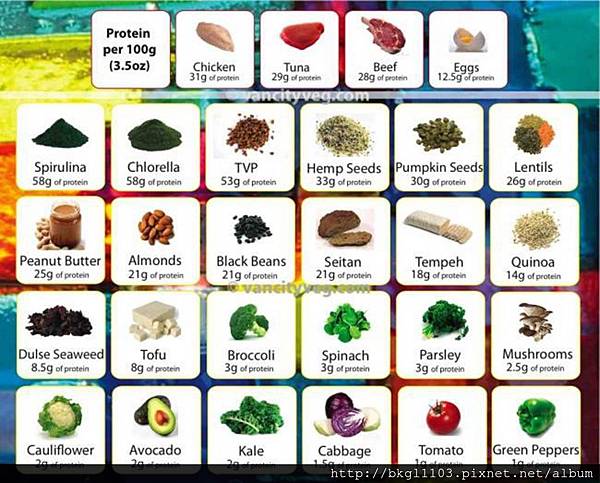 下圖是每100克食材的蛋白質含量