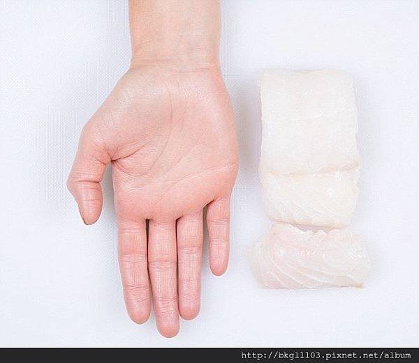 如果是魚肉,請不只掌心,至少到手指大小。