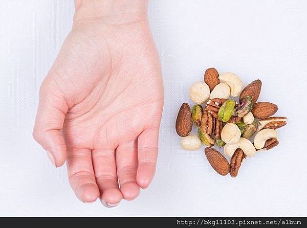 不能否認堅果含有好的油脂,不過為了防止吃入太多熱量,請一次一粒的吃!一次吞一把不只沒法享受堅果的香味,也吃入過多的熱量了!
